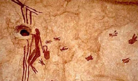 Les premières mentions et représentations de miel dont nous ayons connaissance datent du Néolithique. Par exemple, sur l’une des fresques retrouvée dans la province de Valence (ES) sur les parois des Grottes de l’Araignée (Cuevas de la Araña), est représentée une scène de récolte de miel par une personne suspendue à des lianes/cordes, tenant un panier et entourée d’abeilles. Cette peinture rupestre pourrait dater de plus de 8000 ans. Il s’agit ici d’une scène de récolte de miel à l’état sauvage. Les premières domestications d’abeilles apparurent probablement autour de 3000 ans av. J.-C. – et les premières représentations de ces abeilles domestiquées datent du Haut Empire égyptien (2400 ans av. J.-C.).