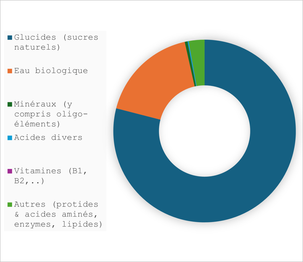 De par sa composition, le miel est une bonne source d’énergie et son pouvoir calorique est important :