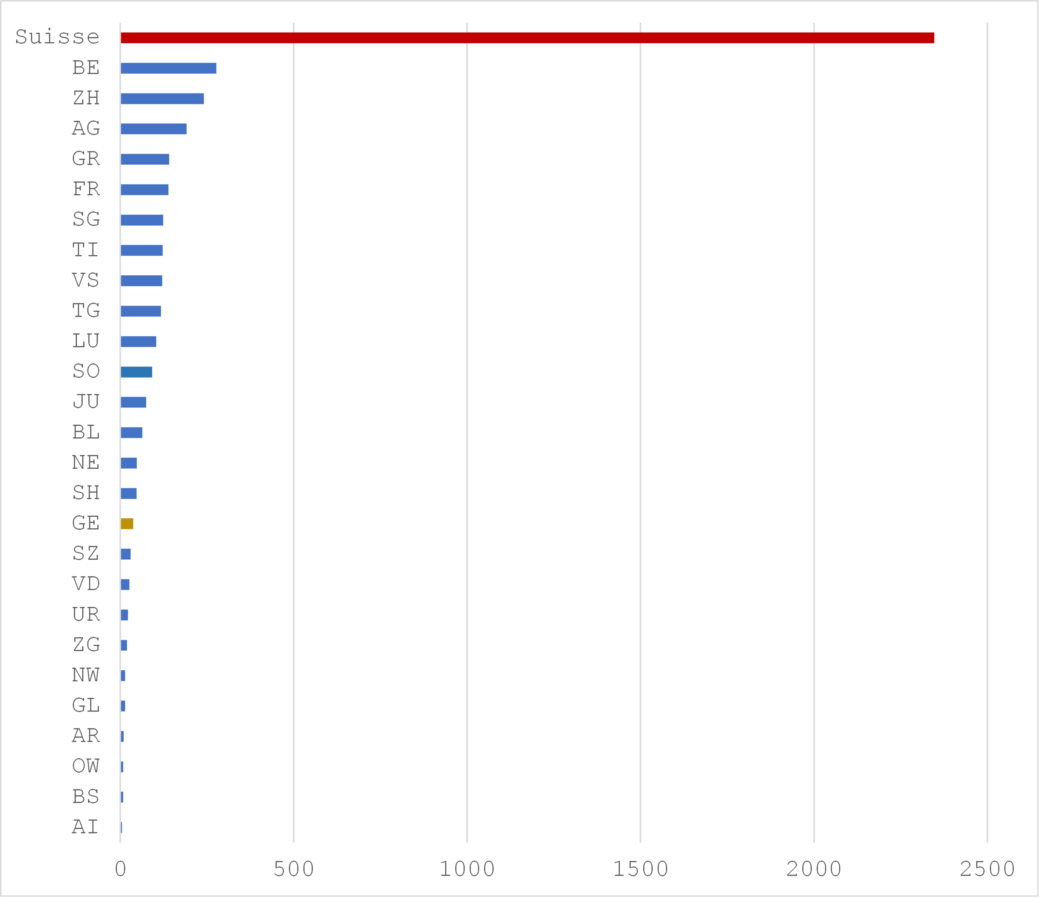 les cantons respectifs. Les régions peu peuplées ont moins de colonies d’abeilles que les régions densément peuplées.