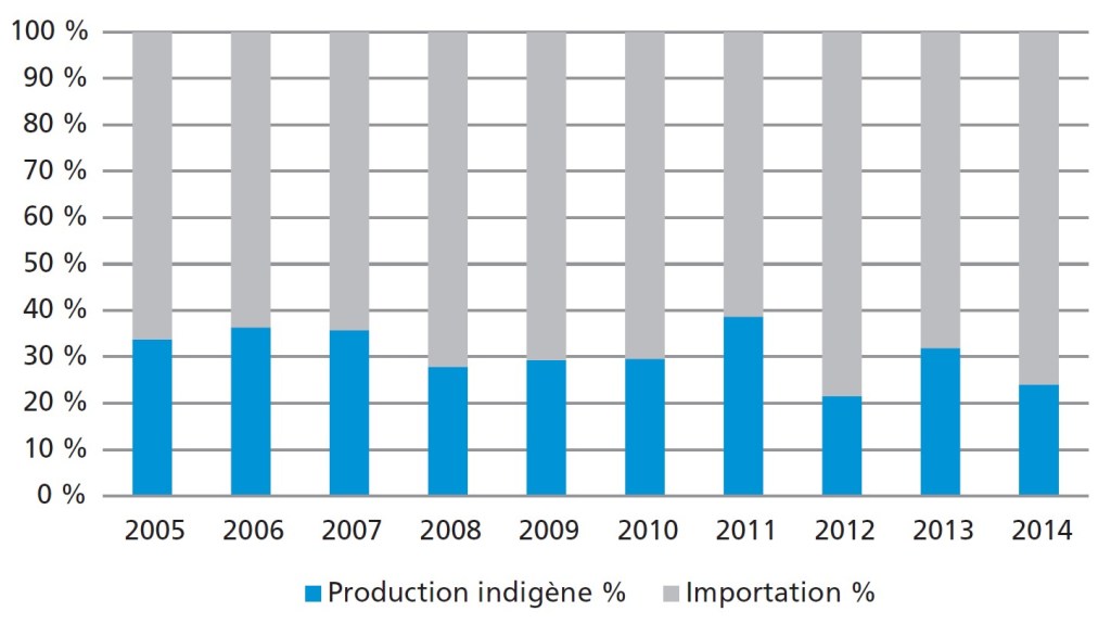 de 2005 à 2014 : en % d’auto-approvisionnement