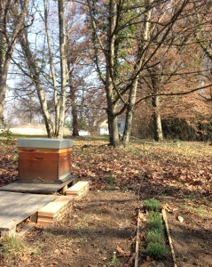 L’emplacement du rucher « R2 » est au cœur d’une grande propriété privée – nommée « Les Vignes Blanches » – située au sein de la commune de Vandoeuvres. Les ruches sont placées dans une zone ombragée traversée par un couloir naturel protégé et composé, entre autres, de tilleuls, d’érables, d’hêtres, de chênes, et d’autres feuillus majestueux. Les planches d’envol des ruches sont orientées sud-est.